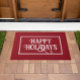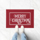 Schöne rote Tür mit weißem Text in einer weißen Box. Der Text ist eine kreative Typografie, die eine Urlaubsstimmung verleiht. Sie können den Text ändern, indem Sie "Dieses Design anpassen" auswählen, bevor Sie dieses Element in Ihren Warenkorb aufnehmen. Ändern Sie es in Happy Holidays, Ihren Namen oder etwas Anderes. Eine neue Türmatte ist eine einfache Möglichkeit, Ihre Zuhause für den Urlaub zu frönen.
