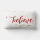 Stilvoll und Spaß, ist dieses Kissen die perfekte Weise, einen kleinen Feiertagsgeist Ihrem Zuhause hinzuzufügen. Kennzeichnet einen weißen Hintergrund mit roten Sternen, die umgebendes rotes Skript der Magie der Jahreszeit "glauben". Frohe Weihnachten.