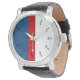 Unterstützen Sie Rot, Weiß und Blau in allem, was Sie tun und tragen - inklusive dieser großartigen Uhr. Mit einem Gesicht mit klassischen schwarzen Ziffern auf einem Hintergrund von roten, weißen und blauen vertikalen Streifen, ist diese Uhr die Definition von Stil.