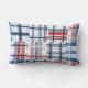 Dieses Kopfkissen ist in Rot, Weiß und Blau gehalten, in einem Patchwork Madras-Muster. Ideal für die Dekoration zu den Themen Küste, Wassersport, Sommer oder Patriotisch.