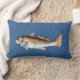 Dieses Kissen kennzeichnet einen künstlerischen Rotbarsch (rote Trommel) auf einem blauen Hintergrund. Personifizieren Sie die Rückseite für das perfekte Geschenk für den Sportfischenenthusiasten!