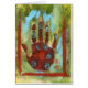 Malerei einer roten Hand mit abstrakten Akupunkturmeridianen.