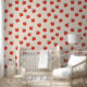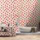 Kleine, saftige rote Äpfel in einem kreolischen Stil auf einer beigen Tapete. Ideal für fruchtige Dekorationen und fröhliche Stimmung.