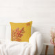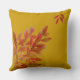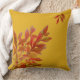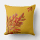 Rote Herbstlaube auf Gold, quadratisches Akzent Kissen für die Zuhause. Saisonale Gestaltung hat Zweige auf beiden Seiten.