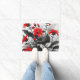 Rote Blume auf Schwarz-weiße Pflanze Fußmatte