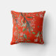 Ein eleganter Luxus-Look Chinoiserie Stil mit einem roten, rosa und goldfarbenen Hintergrund. Das individuell gefertigte Kissen hat ein Monogramm, das für Sie oder Ihre Familie leicht gewechselt werden kann. Das stilvolle Design stammt von Just Fine Designs.