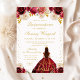 Dieses elegante und glamouröse Quinceañera danke Ihnen für Tag bietet eine schöne Prinzessin mit dunklem Haar in einem Tiara und roten Ball-Gown. Der Text kombiniert handgeschriebene Skripte mit modernen serifenlosen Schriftart für ein elegantes und raffiniertes Aussehen. Die Blumenarrangements und die Goldkonfetti bilden die perfekte Mischung aus rustikal und schick. Grafiken von www.etsy.com/uk/shop/SunflowerDayLove