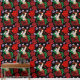 Auburn haarige Frau mit einer Venezianischen Maskeratmaske, die rot und grün in schwarzem Hintergrund trägt