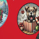 Rote illustre Schneeflocke und Hunde Weihnachtsges Tapete