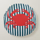 Rote Krabbe auf Seestreifen Rundes Kissen