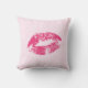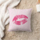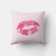Rote Lippen über hellrosa, florales Damaskusmuster Kissen