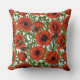 Rote Mohnblüten und Garne, grüne Blätter auf Weiß Kissen