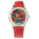 Rote Pfeffer und blaue Kornblumen auf Orange Armbanduhr
