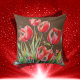 Rote Pflaumen auf braunem Hintergrund | Kissen