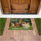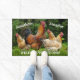 Farbenfrohe Hühner und ein roter Hahn schmücken diese lustige Türmatte, die sagt: "Willkommen auf unserem Coop."