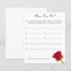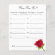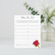 Testen Sie Ihr Brautparty mit diesem eleganten "Wo waren wir?"-Spiel! Mit einem klassischen Design in der rote Rose erweckt diese Unterhaltung die Gäste dazu, zu erraten, wo sich das Paar in jedem Foto befand. Die Person mit den korrektesten Antworten gewinnt! Dieses Spiel ist die perfekte Möglichkeit, wunderschöne Erinnerungen zu erleben und die Gäste in Ihrem Brautparty zu unterhalten. Es verleiht Ihrer Feier eine personalisierte und interaktive Touch.