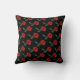 Dieses elegante, blumengeschmückte Kissen zeichnet sich durch ein sich wiederholendes Muster einer exquisiten Single-Scharlachrot-rote Rose mit drei grünen Blätter vor schwarzem Hintergrund aus.