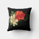 Rote Rose und schwarzer Hintergrund Kissen