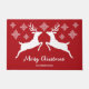 Desteis originelles Design der Silhouette von zwei Hirschen, die sich gegenüberstehen, zusammen mit einigen dekorativen Schneeflocken. Die Hintergrundfarbe ist rot. Es gibt auch einen personalisierbaren Textbereich, der jetzt lautet: "Frohe Weihnachten".