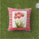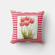 Mit diesem roten Tulpenkissen dekorieren Sie Ihren Wohnbereich im Freien. Dieses Kissen ist mit einem rot-weiß gestreiften Hintergrund und einem Overlay von grafisch gestalteten Tulpe-Blume versehen. Die Rückseite ist solide rot. Kaufen Sie wie gezeigt mit Stoff im Freien oder wählen Sie ein Innenmaterial. Die Kissen sind für die Frühjahrszeit und für den Osterurlaub oder den Muttertagsaufenthalt dekorativ.