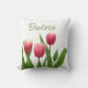 Ein Set roter Tulpen Blume blühen auf einem weißen Hintergrund mit Ihrem eigenen Namen in einem grünen Schriftart mit Skripten.