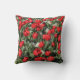 Ein Kissen mit einem attraktiven Foto von roten Tulpen, das in der Brise gebeugt wird, zusammen mit weißen Primrosen.