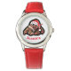 Niedliche Uhr für jugendlich Mädchen mit Entwurf des Cartoonaffen auf Weihnachtsmannmütze