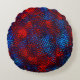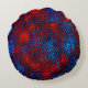 Rote und blaue Kratzer in Quadraten oder Würfeln Rundes Kissen