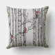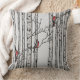 Rote und graue Birkenbäume und Rote Kardinal Kissen