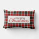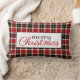Niedliches kariertes Weihnachtskissen in Rot und Schwarz mit den Worten Frohe Weihnachten auf der Vorderseite. Coordinating back, fügen Sie Ihren Familiennamen, eigene Nachricht auf der Rückseite oder verlass leer. Sehen Sie sich alle unsere Feriendekoration in unserem Zazzle Shop an!