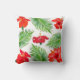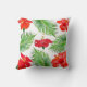Roter Hibiskus Blume & Palm Blätter auf Weiß Kissen
