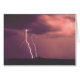 Dies ist ein Foto von einem ominösen rosa Himmel und einem Blitz.