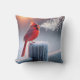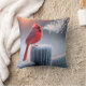Roter Kardinal beim Winterzaun Kissen
