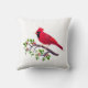 Schöner roter Kardinal stehend auf einem Baumzweig Kissen. Text, nur auf der Vorderseite, kann personalisiert sein.