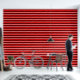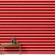 Rote und tiefe rote Streifen Linien mit dünnen schwarz-weißen Linien zwischen geometrischem Oberflächenmuster, nahtlos