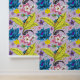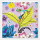 Ein niedlicher, mit Augen Baumfrosch auf drei Blätter vor einem Hintergrund von Licht lila und Blume