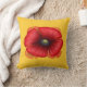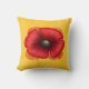 Ein roter Mohn auf einem gelben Kissen. Es ist zweiseitig mit einem Mohnmuster auf der Rückseite