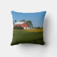Roter Stall neben einem Sojabohnenfeld Kissen