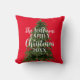 Fügen Sie Ihren Familiennamen und das Jahr zu diesem festlichen roten Weihnachtsbaumkissen hinzu. Es ist zweiseitig und auf der Rückseite ist ein weiterer Weihnachtsbaum. Frohe Baummas!