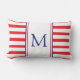 Roter und weißer Streifen mit Navy Blue Monogram Lendenkissen