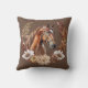 Ein schönes Portrait eines Sorrel Pferdes mit einem Stern wird im Zentrum eines Herbstkranzes in den Tönen Zimtbraun, Bräune und Sahne platziert. Das Pferd- und Kranzdesign wird auf einem mittelbraunen Hintergrund platziert. Beide Seiten des Kissens haben das gleiche Bild. *Sie können die Hintergrundfarbe ändern, indem Sie das Design bearbeiten wählen.