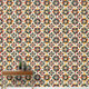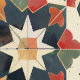 Traditionelle marokkanische Mosaikfliesen in den Farben Rot, Orange, Gelb, Grün, Schwarz und Creme
