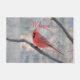 Der helle rote Kardinal, der auf dauerhafter willkommener Matte gekennzeichnet wird, macht einen großen ersten Eindruck!
