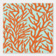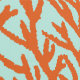 Eine Aquarellfarbe eines starken Riffs aus roter Koralle mit realistischen, rauen Kanten mit einem aqua blauen karibischen Meer. Teil der Coastal Kollektion von cheriedesues_studio.