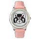Kinderuhr aus Edelstahl mit rosa Lederarmband