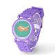 Uhr, Kinderuhr aus Edelstahluhr mit lila Lederarmband