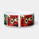 Rot und Grün Weihnachten Holiday Pet Bowl erstellt von Imagine That! Das Design ist perfekt für Haustierbesitzer, die ihren Hund oder ihre Katze Liebe haben. Das Design zeichnet sich durch das originelle Vintage Linoleumblock-Druckdesign in Rot und Grün aus. Leckereien Sie Ihr Haustier zu seinen eigenen personalisierten Speisen und Wasserschalen in dieser Ferienzeit. Oder nutzen Sie diese lustige Urlaubsplanschale als Snack-Schüssel für Ihr Weihnachts-Party. Gute Ferien!