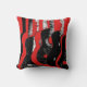 Rotes und schwarzes Kissen, das ich unter Verwendung meiner Grafik in einer abstrakten Realismusart entwarf.