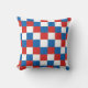 Klassisches und einzigartiges Kissen mit roten, weißen und blauen Schachbrettmuster.