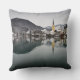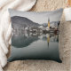 Foto Throwkissenkissen mit einer Winterszene mit der Reflexion des gelben Kirchturms im ruhigen Wasser von Tegernsee See und mit Schnee auf den Dächern der Häuser der Stadt Rottach-Egern mit den Alpenbergen im Hintergrund im Bayern (Bayern), Deutschland.